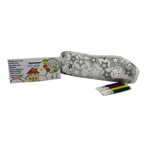 • Pencil case made of canvas like material.• Includes 4 colored mini markers to color your own pencil case.