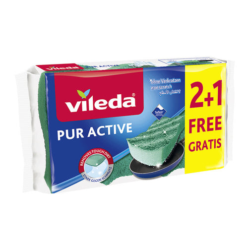 • Removes stubborn dirt: Thanks to its innovatively structured scouring layer, the PUR Active sponge easily removes the most stubborn dirt.