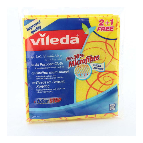 • The Vileda all-purpose cloth- wet wiping, brushing, dusting and getting rid of dirt is easy with this yellow all-purpose cloth.
