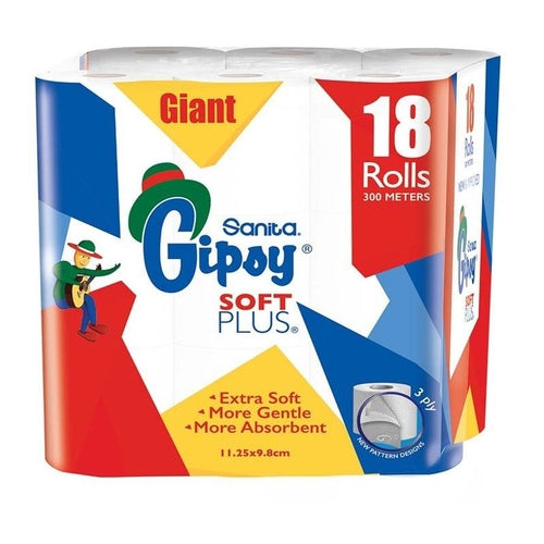 Sanita Gipsy Soft Plus Toilet Papers, 3Ply, Pack of 18 Rolls
