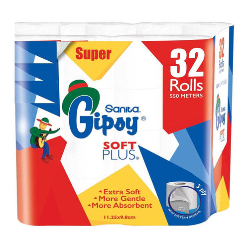Sanita Gipsy Soft Plus Toilet Papers, 3Ply, Pack of 32 Rolls