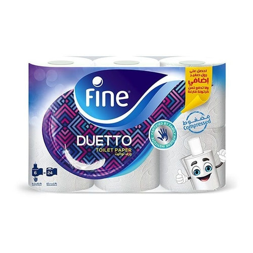 Fine Duetto Toilet Papers, 2 Ply, Pack of 6 Rolls