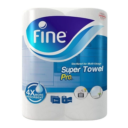 Fine Super Towel Pro Kitchen Paper Towels, 3Ply, Pack of 2 Rolls