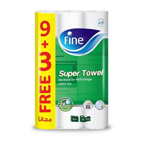 Fine Super Towel Kitchen Paper Towels, 2Ply, Pack of 9+3 Rolls