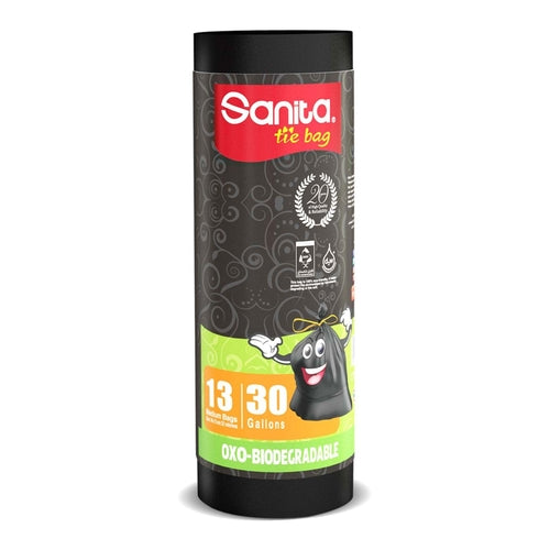 Sanita Tie Trash Bags, Eco Friendly, 13 Bags, 30Gal