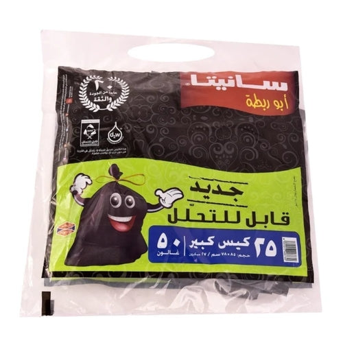 Sanita Tie Trash Bags, Eco Friendly, 25 Bags, 85x78cm, 50Gal