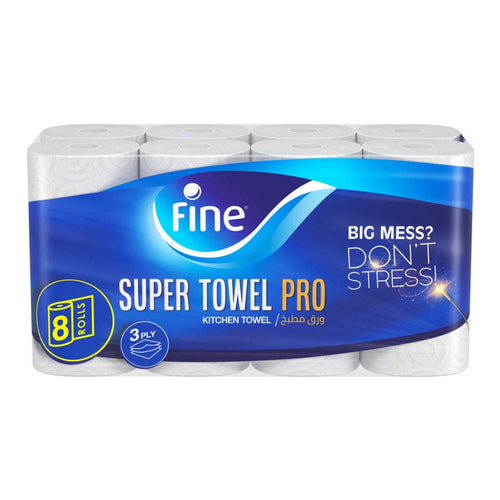 Fine Super Towel Pro Kitchen Paper Towels, 3Ply, Pack of 8 Rolls