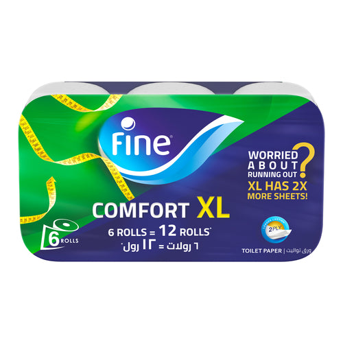 Fine Comfort XL Toilet Papers, 2Ply, Pack of 6 Rolls