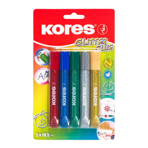 Kores Glitter Glue, Standard Colors, 10.5g x 5