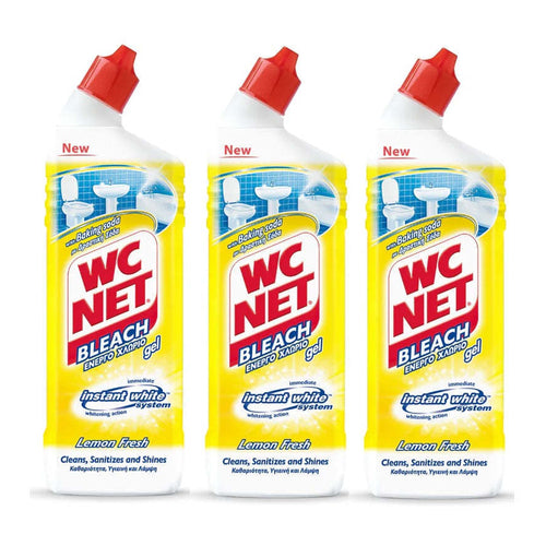 WC NET Bleach Liquid Gel, Instant White, Lemon Fresh, 750ml, Pack of 3