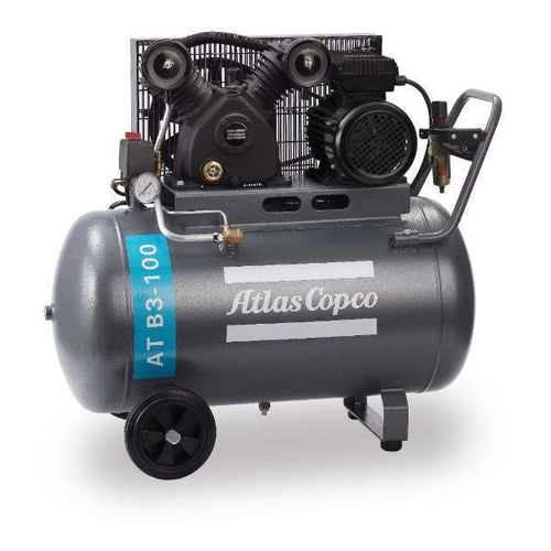 • The reliable ATB 2-100 comes with a filter regulator and hand bar panel for easier control. This unit is also easier to move as it is equipped with solid rubber wheels and two rubber feet. Other features of the ATB 2-100 include the condor pressure switch, metal belt guard and Atlas Copco dashboard. These features show that this unit has been built to work for you.