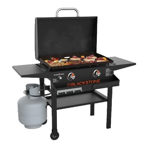 • Cooking Surface: 28 3/4" W x 18 1/4" D • Two Adjustable Heat Controls • Rear Grease Management System • Front Accessory Shelf • Accessory Hooks & Magnetic Toolbar • Built-In Ignitor • Heavy-Duty Hood to Protect Griddle Top