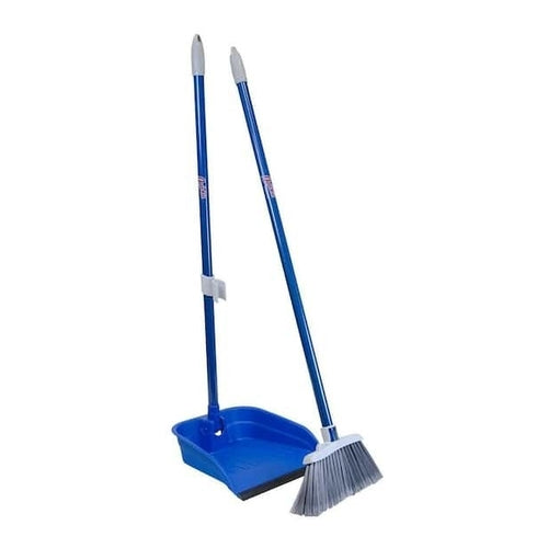 • Use this dustpan and broom set in kitchen, office, bathroom, garage and it helps tackle the messes effectively. Handle snaps into dustpan and features a loop for hanging storage.