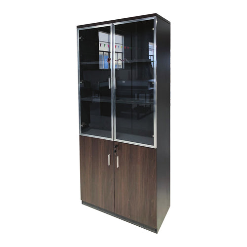 • High Quality MFC Panel with PVC edge.• Panel thickness 25mm.• Plastic feet height levelling 10+-• 2 wooden doors with lock + 2 Glass doors• Size: L80 x D40 x H180cm.