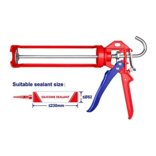 • 9" caulking gun• Strong aluminum handle• Length: 230mm• With rotary function• Thickness:1.8mm• Diameter:55mm• Smooth rod:8.0mm• Packed by paper card