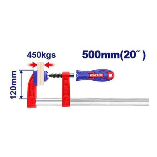 • Clamp size:120x500mm• Max clamp force: 450KGS• Thickness and width of iron ruler:8X30mm• Diameter of screw thread:15.31mm• Packed by paper card