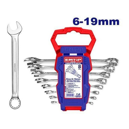• 8pcs combination spanner set• Size:6-19mm• 6mm,8mm,10mm,12mm,14mm,15mm,17mm,19mm• Fine polished• Packed by plastic hanger