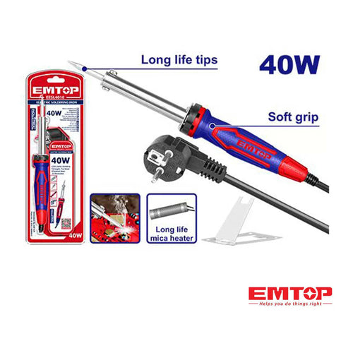 • Voltage:220-240V~50/60Hz• Input power:40W• Preheat.time:3~5minuters• Straight, tip head• With a piece of support• Long life replaceble tip• Packed by sliding card