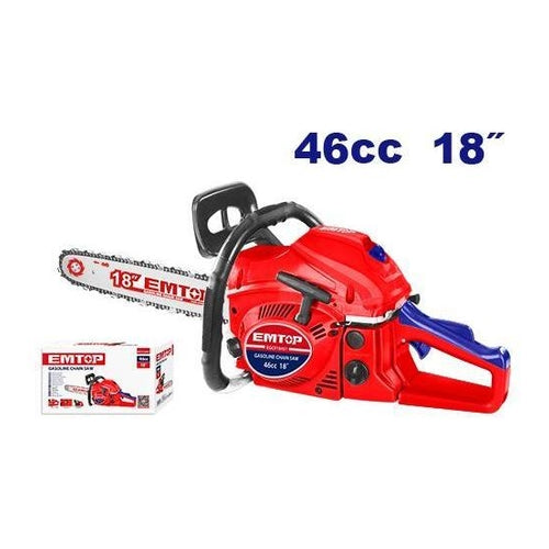 • Displacement:46cc• Rated power:1.8Kw• Engine idle speed:3100±300rpm• Max. cutting diameter:445mm(18")• Fuel tank capacity:550ml• Oil tank capacity:260ml• Powerful 2-stroke motor• 18" chain saw• Packed by color box