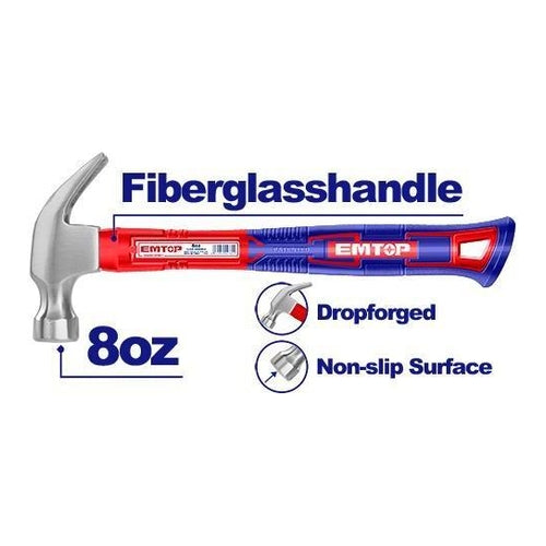 • Weight:8oz/220g• Anti-slip function• Drop-forged hammerhead• Heat treatment,45# carbon steel• Unique design fiberglass handle• Packed by label