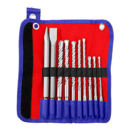 • SDS Plus shank • 8pcs SDS Plus hammer drill bits:6X160mm,8X160mm,10X160mm,8X210mm,10X210mm,12X210mm,14X210mm,16X210mm • 2pcs SDS Plus chisel: • 14X250mm,14X250X20mm • Packed by canvas bag