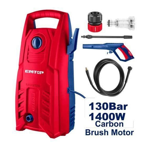 • Voltage: 220-240V~50/60Hz • Carbon brush motor • Pure copper wire • Input power:1400W • Max Pressure:130Bar (1900PSI) • Flow rate:5.5L/min • Auto stop system • 1 set water spray gun • 5m high pressure hose • Packed by color box