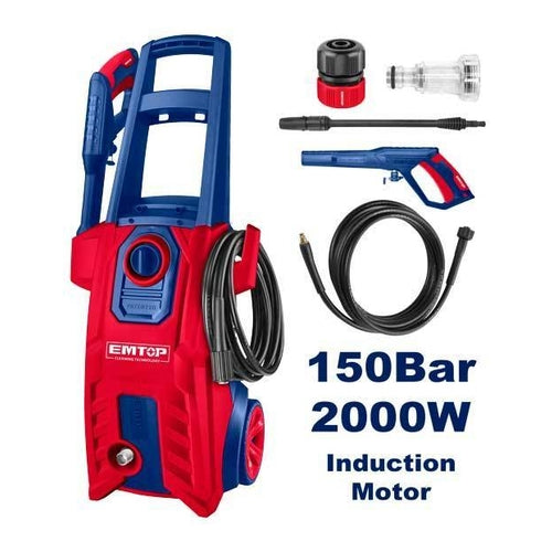 • Voltage: 220-240V~50Hz • Copper wire induction motor • Input power:2000W • Max Pressure:150Bar (2200PSI) • Flow rate:6.0L/min • Auto stop system • 1pcs soap bottle • 1 set water spray gun • 5m high pressure hose • Packed by color box