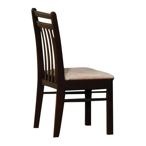 • It is made of solid German beech wood with a warm cappuccino brown finish and has a straight slatted back and square legs with stretchers bridging the two side legs.