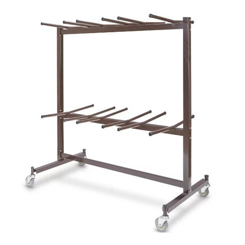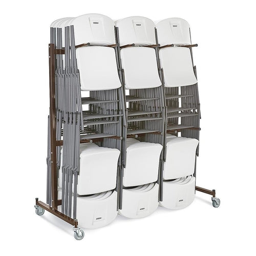 • Easy to maneuver in tight spaces. • Rugged powder-coated steel. • 4" casters: 4 swivel. • 2 Tiers • Folding chairs sold separately • Dimensions: L 67 x W 33 1/4 x H 70 Inch • Capacity: 84
