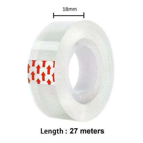 • Transparent tape with great adhesion.• 18mm Width X 27m Length.• Smooth unwinding for quick, convenient use.• Ideal for home, office and school.• Odorless for pleasant use.
