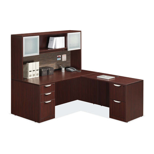 • Premium MFC Spain Laminate • Two storage drawers • Three file drawers • Overhead storage with glass doors • Tack Board • Dimensions: L 160 x D 100 x H 75 cm • Hutch Height: 160cm