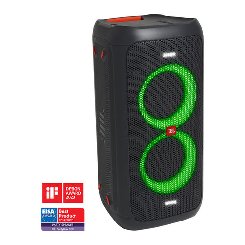 • Power to the party: Kick out the hottest jams in town. JBL PartyBox 100 thumps out 160 Watts of that pounding JBL signature sound. Start the party whenever and wherever you need