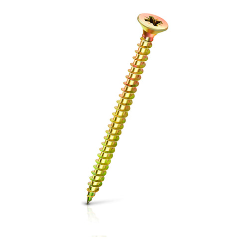 • Featuring countersunk head with ribs on underside. • The ribbed head is a good help to remove the chipboard particles to sink the head flush.