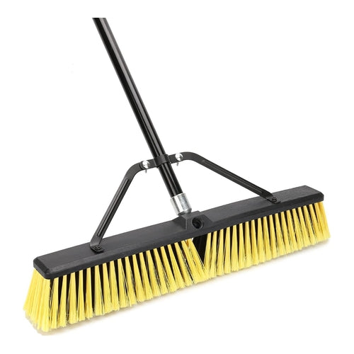 • 24" Wide Stiff Broom-The garden brush head has great width for sweeping wide area with a generous amount of bristles ,it has two handle slot ,can be swapped sides if you find the bristles are wearing unevenly.