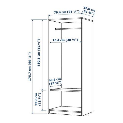 • Top panel/ Bottom panel/ Side panel/ Shelf/ Plinth: Particleboard, Paper foil