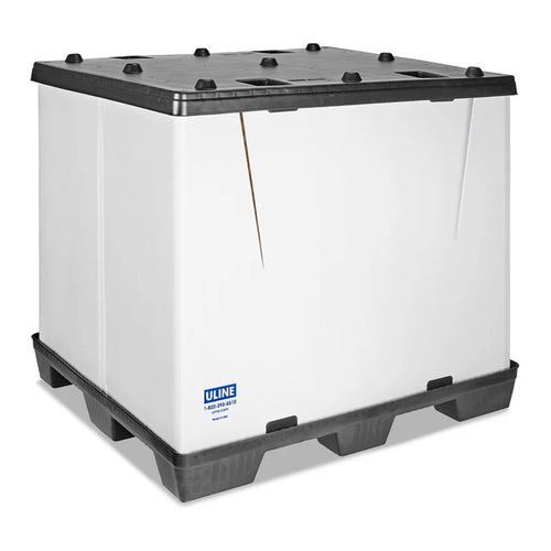 • Pallet interlocks with lid to keep stacked containers stable.