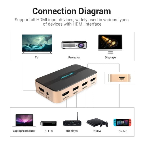 • 4K video output: The HDMI Switch support 4K video output through the cables to allow you capture more detail.
