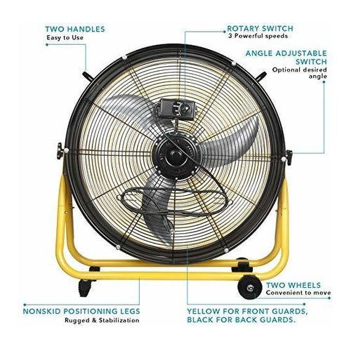 • Durable Construction: This heavy duty shop fan is made with reinforced wire grill for added safety, all-metal construction with 3 aluminum blades, features three speed settings for airflow rates up to 7,800 cubic feet per minute (CFM).