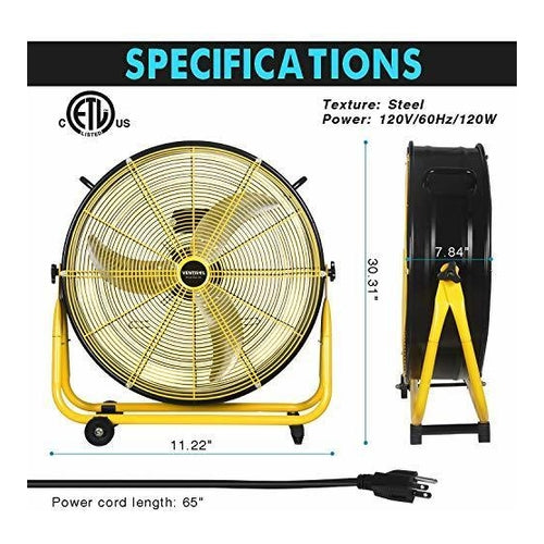 • Energy Saving: With VENTISOL’s new research and development, we reduces the power almost 1/2 of the industrial fan, only 120W, making it one of the lowest power 24 inch large drum fan on the market. But the features are the same, you can not only enjoy the energy cost saving, but also the powerful air movement.