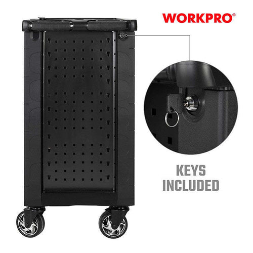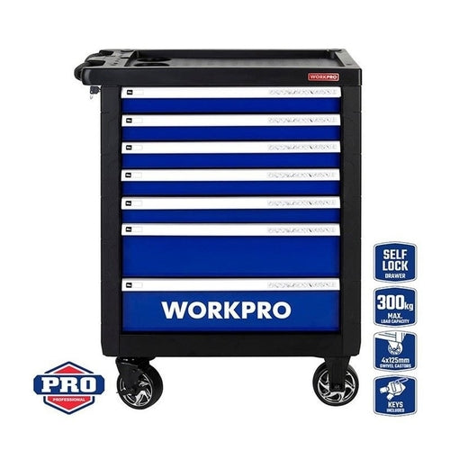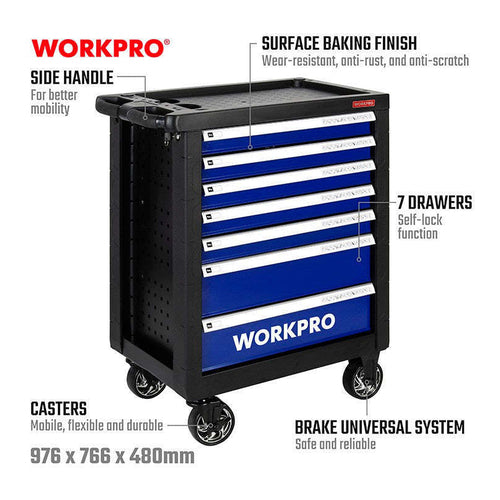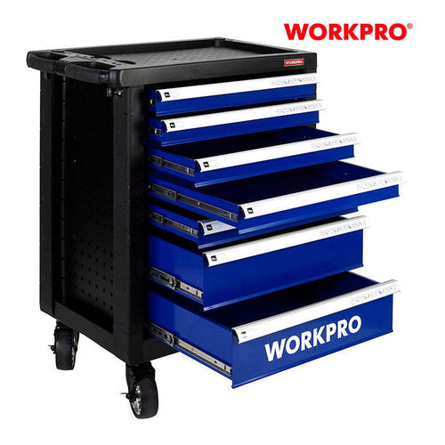 • 7- Drawer Roller tool cabinet is constructed of sturdy steel frame with wheels for easy mobility.